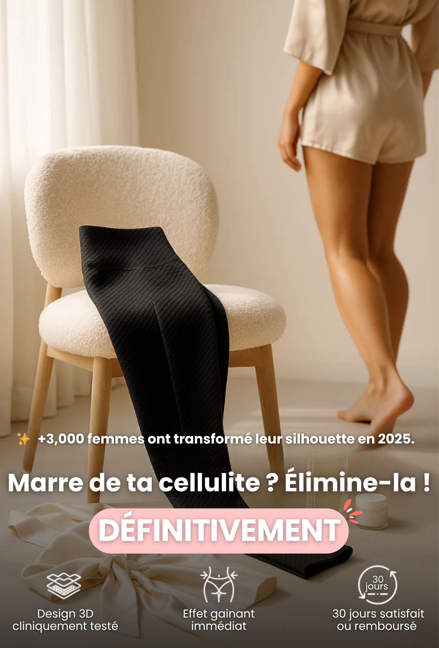 "J’ai tout essayé contre la cellulite, mais ce legging 3D est le seul à avoir fonctionné. 2h par jour et mes résultats sont impressionnants. Le seul produit qui m'a réellement aidée !"
